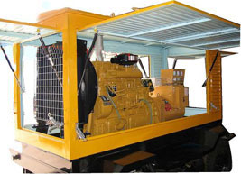 路桥柴油发电机组/移动柴油发电机组设计独具创新,机动性高、重心低、制动安全、制造精良、外形美观。 路桥拖车车架采用槽梁焊接成框架结构,节点选择合理、强度高、刚性好;同时装有钢板弹簧悬架结构;拖车采用高度可调节插销式牵引架,适用于各种高度牵引车;采用圆形钢管焊接直通式车轴,结构紧凑,安全可靠;车架四角设有机械式支撑装置,配备惯性行车制动、驻车制动和脱离应急制动,确保机组在各种状况下的安全;车架前端设有支撑轮,具备承受机组垂直载荷的功能的同时还具备导向功能;整车配备转向和刹车指示灯,同时装有尾灯标准插头
